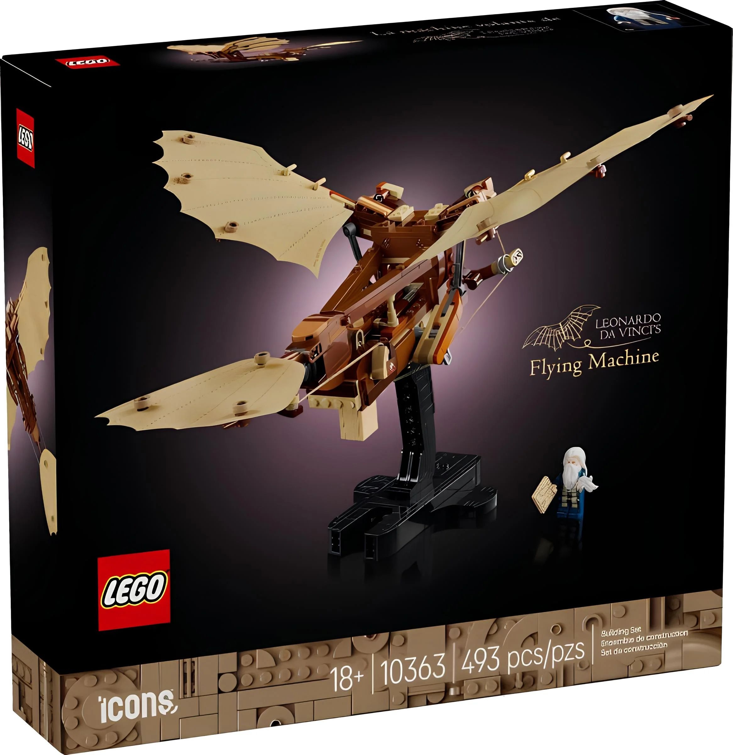 Артикул: 131943 LEGO Icons 10363: Leonardo da Vinci's Flying Machine (Летательная машина Леонардо да Винчи) — набор серии Icons, количество деталей - 493, дата выхода 2025 г., 1 минифигурка, возраст от 18 лет, размеры модели в собранном виде: 25х29х35 см. |