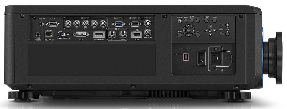Лазерный проектор BenQ LU9915 оснащён большим количеством популярных разъёмов: VGA, DVI, HDMI, LAN и 3G-SDI, который используется для передачи несжатых цифровых видеосигналов. Кроме того, устройство поддерживает технологию HDBaseT для передачи данных из различных источников видео и аудиоинформации по одному кабелю.