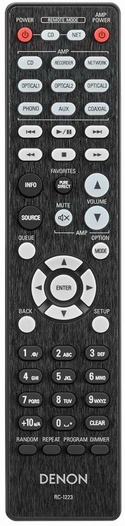 Передняя панель Denon DCD-600NE, изготовленная из специально обработанного алюминия, имеет слегка изогнутый фигурный профиль и чуть выступает над корпусом. Дизайн прост, аккуратен и в то же время элегантен. Центральное место занимает лоток CD-привода, под которым находится информативный двухстрочный флуоресцентный дисплей. Справа расположены основные функциональные кнопки: воспроизведения/паузы, остановки, перемотки и перехода на следующий/предыдущий трек, а также открытия загрузочного механизма. В левой части находится клавиша включения питания и перевода в режим standby. Проигрыватель дополнен удобным пультом ДУ с разной размерностью кнопок, что будет не лишним, например, при управлении им в темноте.