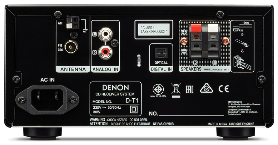 Компания Denon представляет самую бюджетную модель музыкального центра D-T1, по сути центр Denon D-T1 является упрощенной версией модели Denon D-M41. Производитель решил уменьшить стоимость изделия за счет экономии на разъемах для подключения акустических систем (в Denon D-T1 установлены обычные разъемы-прищепки, против винтовых клем в D-M41), ликвидирован выход на внешний сабвуфер, а также была уменьшена мощность усилителя в два раза (15 вт против 30 вт в D-M41).