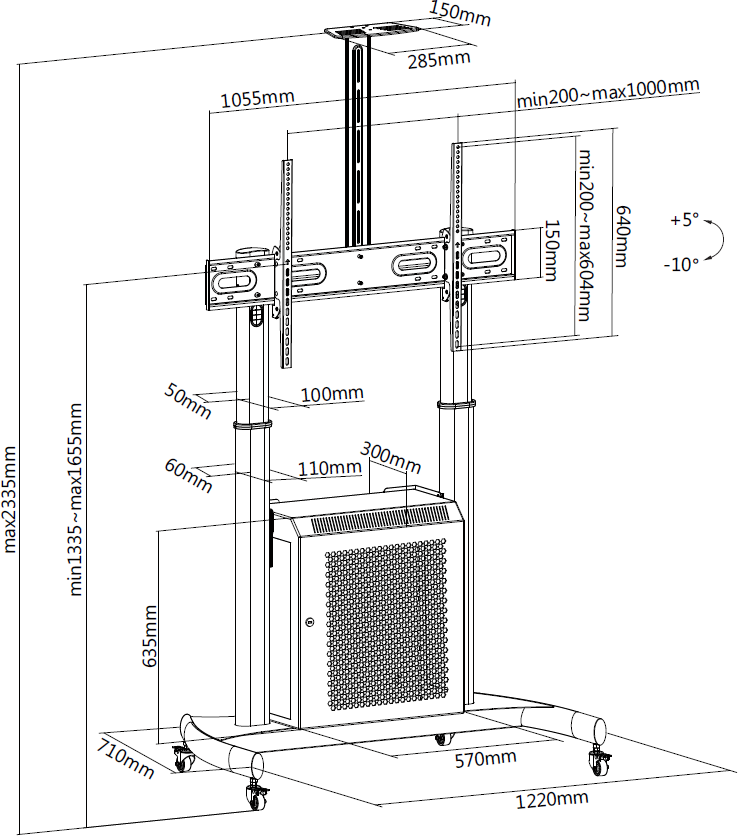 | Регулировка высоты ТВ, мм | 1365 - 1685 мм (шаг 80 мм) |