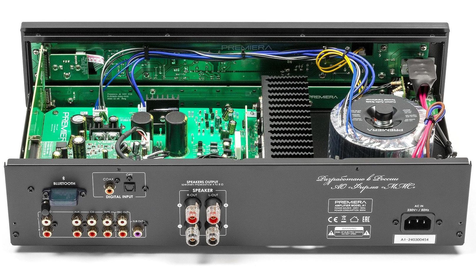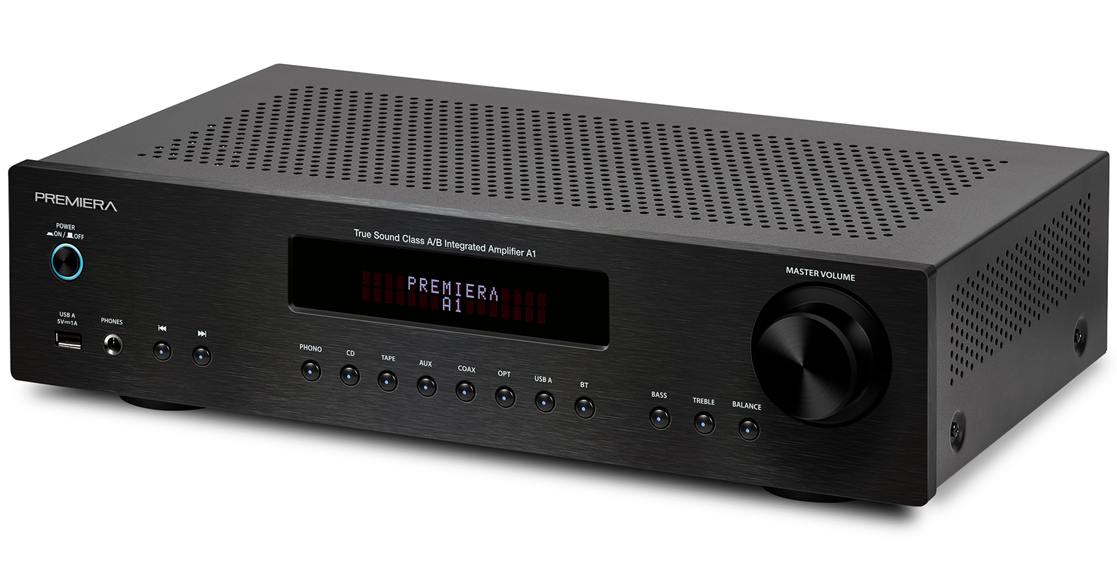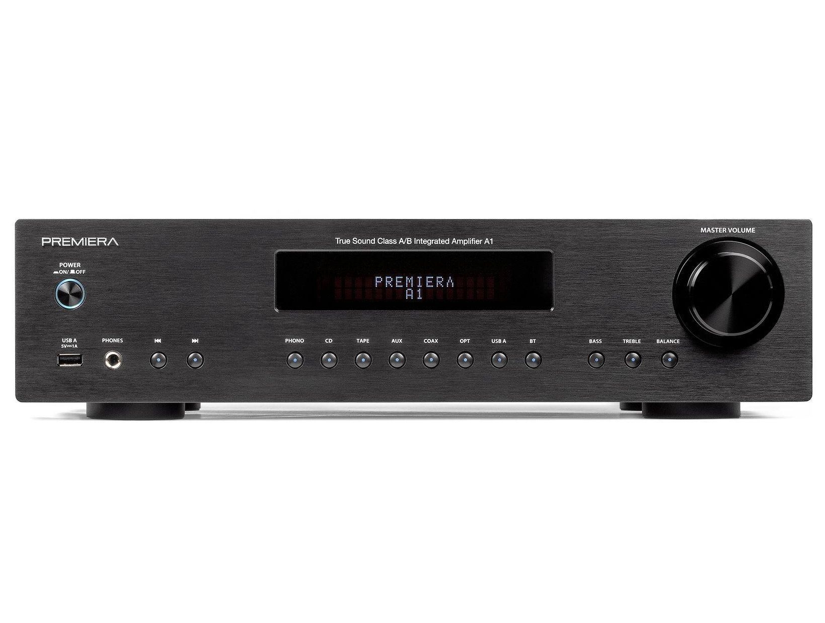 Premiera A1 – современный интегральный Hi-Fi стереоусилитель класса AB со встроенным ММ-фонокорректором, ЦАП и Bluetooth с номинальной выходной мощностью 51 Вт на канал.